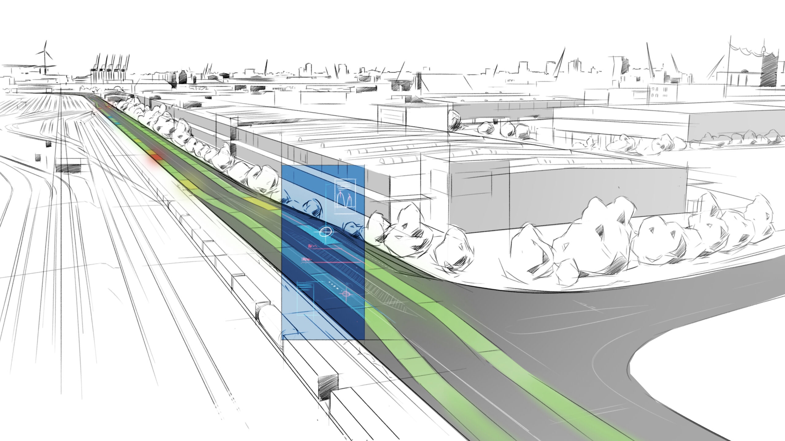 Aufbauend auf den Erfahrungen aus dem Projekt smartBRIDGE Hamburg, welches den Digitalen Zwilling der Köhlbrandbrücke entwickelt hat, geht das neue Vorhaben deutlich weiter. Statt eines einzelnen Bauwerks wird nun ein ganzes System aus mehreren Brücken und einem Straßenabschnitt digital erfasst, vernetzt und analysiert.