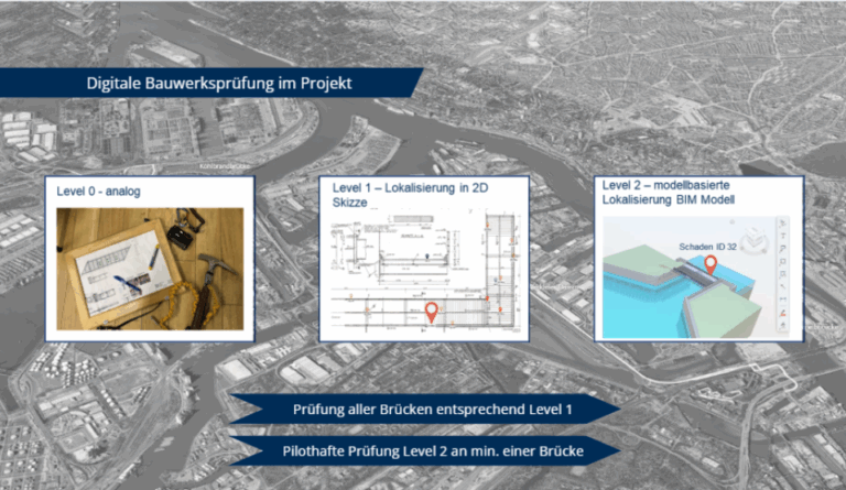 Ein besonderer Projektschwerpunkt liegt auf der Integration der Bauwerksprüfungsdaten und der Realisierung einer mobilen und digitalen Bauwerksprüfung.