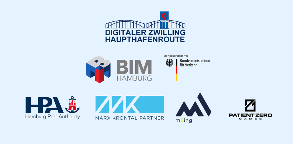 Die Partner im Projekt „Digitaler Zwilling Haupthafenroute“ sind MKP GmbH zur Entwicklung der Softwarelösung der Digitalen Objektzwillinge und Umsetzung einiger ingenieurstechnischer Teilprojekte sowie m2ing zur Weiterentwicklung der Digitalen Bauwerksprüfung und Pilotierung einer modellbasierten Bauwerksprüfung.