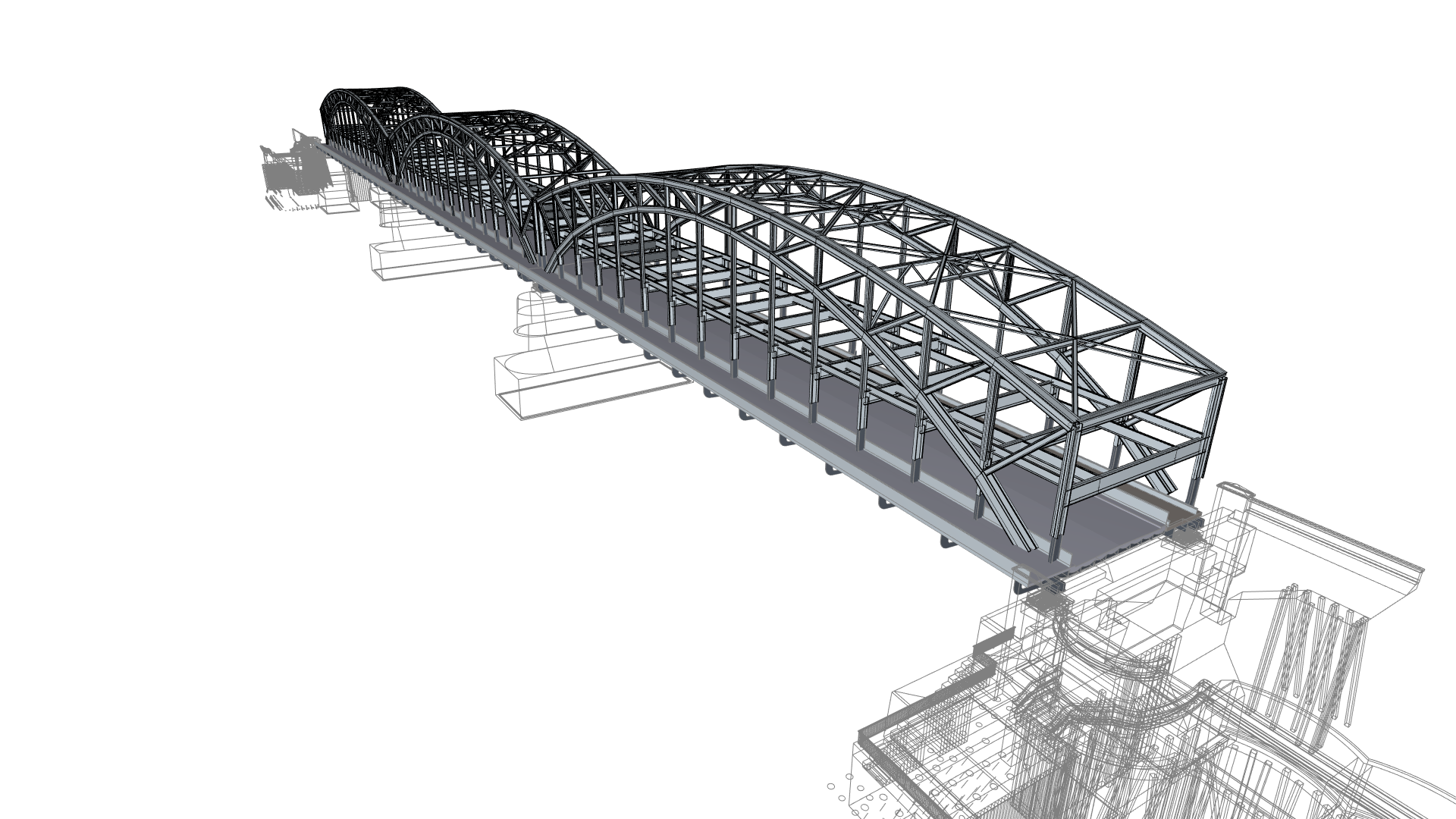 Das BIM-Bestandsmodell der Freihafenelbbrücke war zu Projektstart bereits vorhanden, allerdings nicht unseren neuesten Standards entsprechend. Hier haben wir nachgebessert und es nun entsprechend der aktuellen Standards modelliert (bspw. BIM.Hamburg-Objektkatalog). Das Bestandsmodell dient nun als Grundlage zur Integration in den Digitalen Zwilling, sowohl auf Objektzwilling-, als auch Systemzwilling-Ebene. Die Softwarelösungen für den Objekt- und Systemzwilling werden noch entwickelt. Das Monitoringsystem ist installiert und befindet sich in der Kalibrierungsphase. Bis der Digitale Zwilling entwickelt und operativ nutzbar ist, werden die dann aktiven Monitoringsysteme in einem separaten System überwacht.