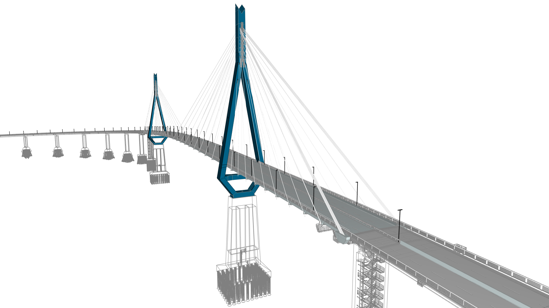 Das BIM-Bestandsmodell der Köhlbrandbrücke war zu Projektstart bereits vorhanden, allerdings nicht unseren neuesten Standards entsprechend. Hier haben wir nachgebessert und es nun entsprechend der aktuellen Standards modelliert (bspw. BIM.Hamburg-Objektkatalog). Das Bestandsmodell dient nun als Grundlage zur Integration in den Digitalen Zwilling, sowohl auf Objektzwilling-, als auch Systemzwilling-Ebene. Die Softwarelösungen für den Objekt- und Systemzwilling werden noch entwickelt. Bis der Digitale Zwilling entwickelt und operativ nutzbar ist, werden die bereits aktiven Monitoringsysteme in einem separaten System überwacht.